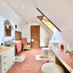 At the heart of the Cottage on the ground floor is the impressive lounge/dining room with ornate ceiling roses, cornice work, superb timber flooring and feature fireplace. A stunning very well-appointed kitchen/breakfast room complete with built in appliances and a family/TV area adjoins the lounge with utility room off. Across the main entrance hall is the generous master bedroom with ornate cornice and ceiling rose and en-suite shower room off. The refitted family bathroom with jacuzzi bath is also at the ground floor level. A lovely bright staircase leads to the first floor landing where you’ll find the delightful 2nd bedroom with bay window and substantial en-suite shower room off to the rear of the house. There’s a further good-sized double bedroom with the most amazing garden views. The property has mains gas central heating, double and secondary glazing.