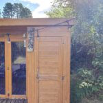 Exteranlly, there is a timber built summer house with side store attached.